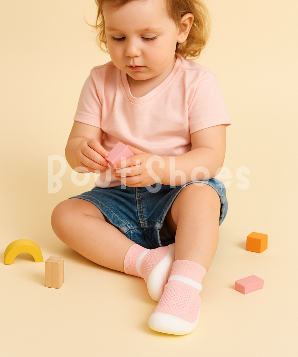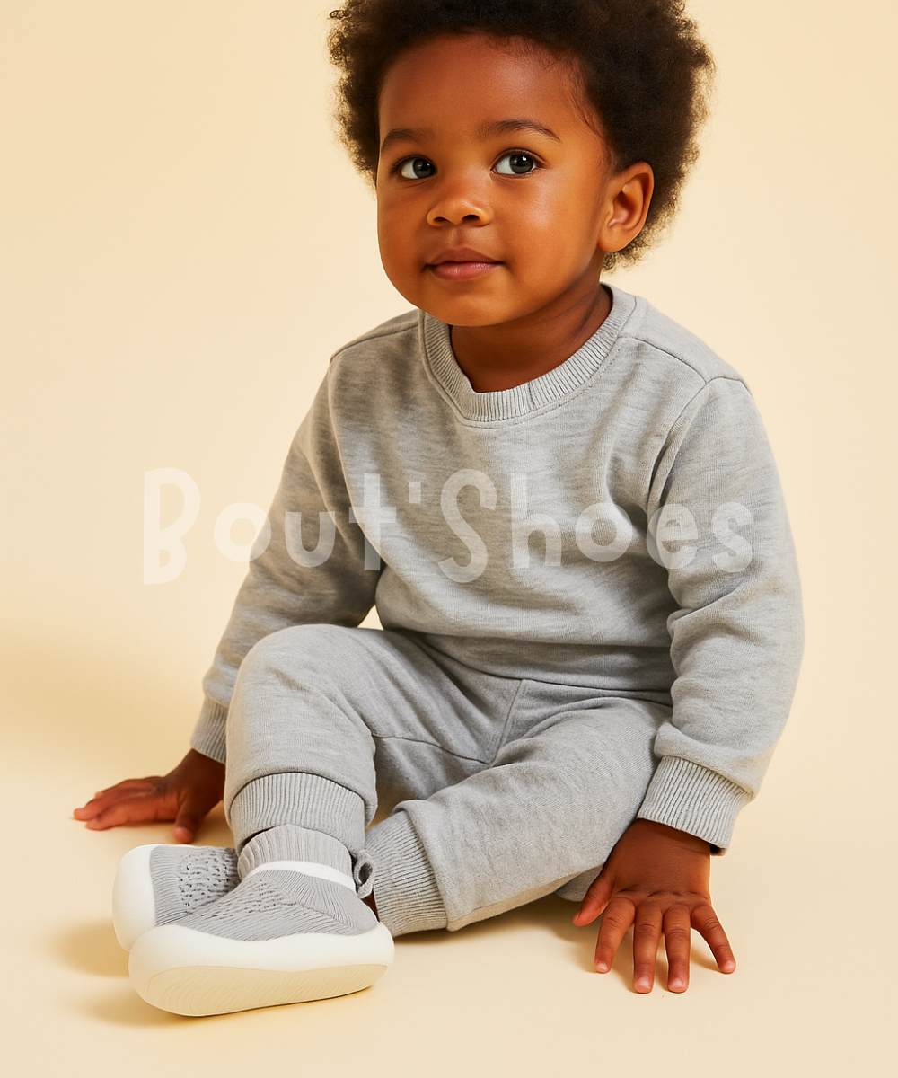 Grâce à leur maille ultra-souple, les Bout’Shoes s’adaptent à toutes les formes de petits pieds — fins, potelés ou entre deux tailles.
